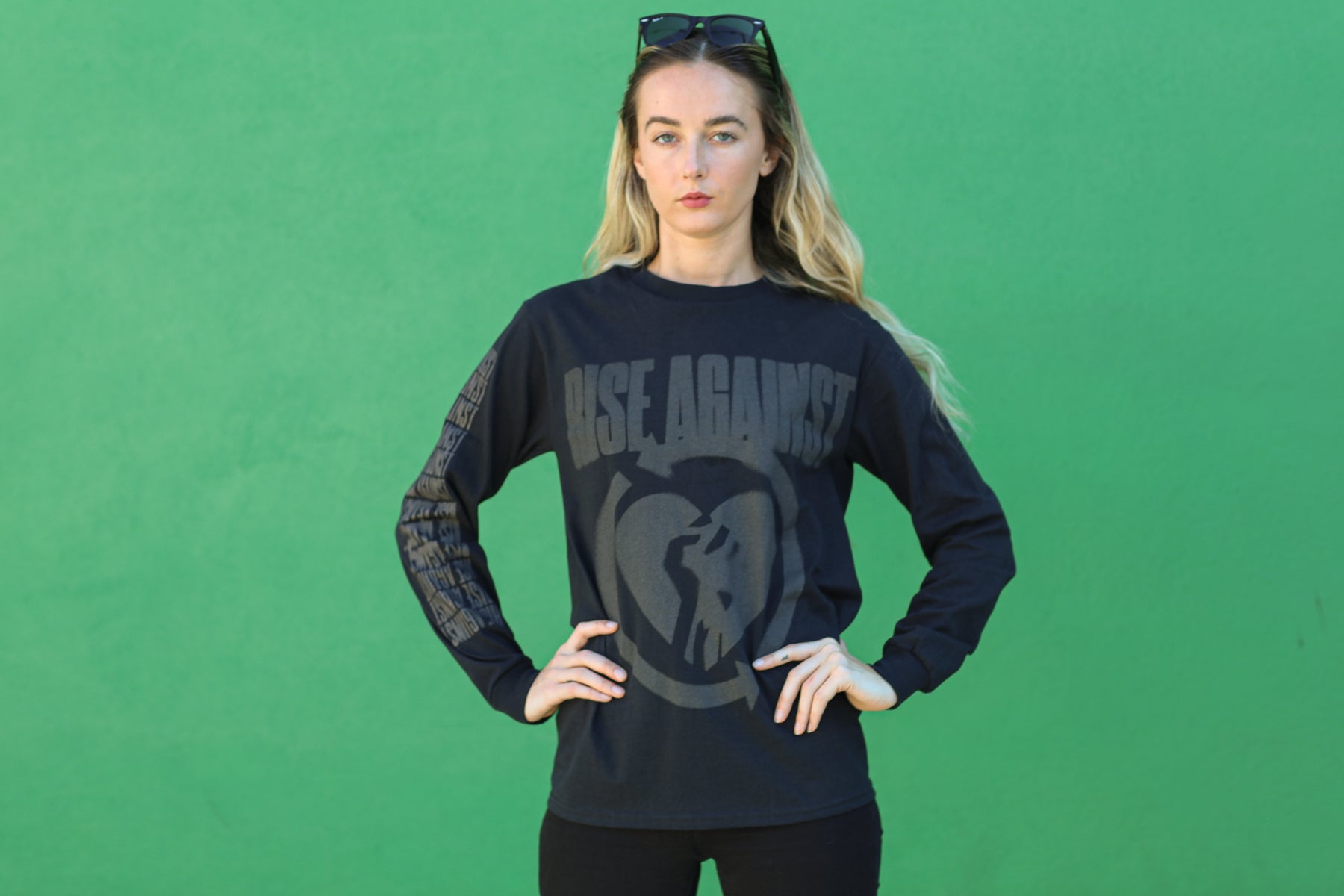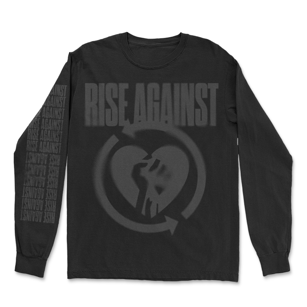 The Rise Against Blurred HeartFist design, screen printed on a comfortable, standard-fitting black long sleeve.