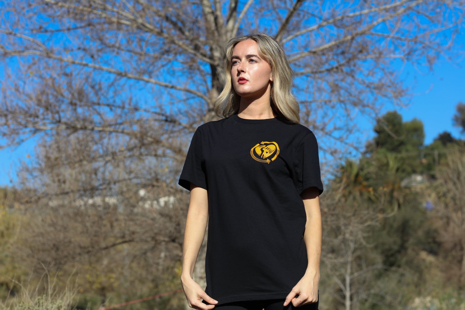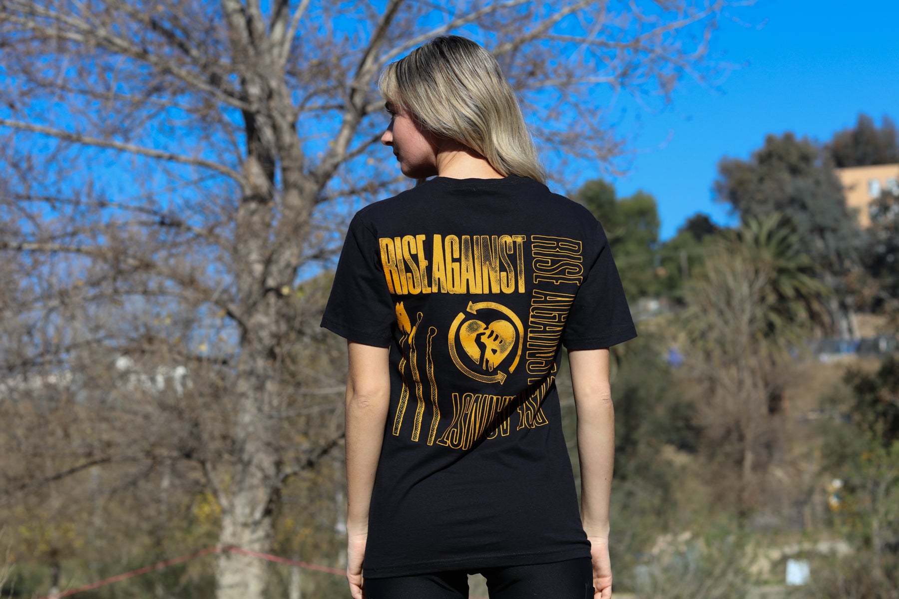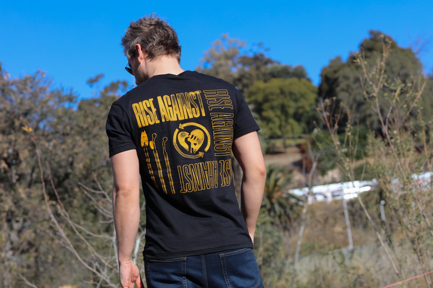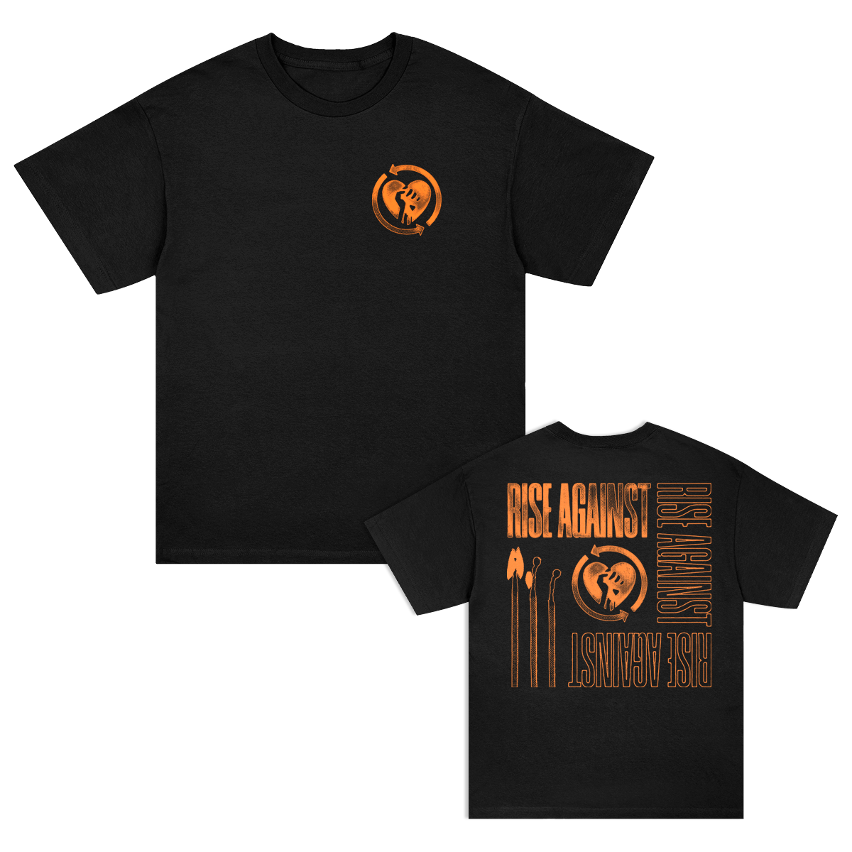 The Rise Against Matches Cube design, screen printed on a comfortable, standard-fitting black t-shirt.